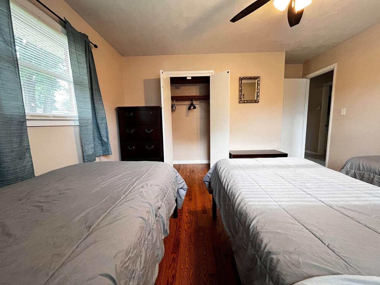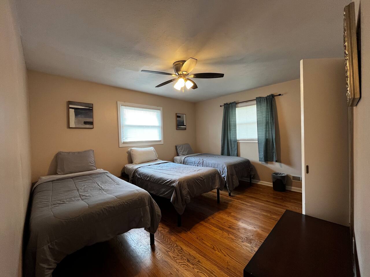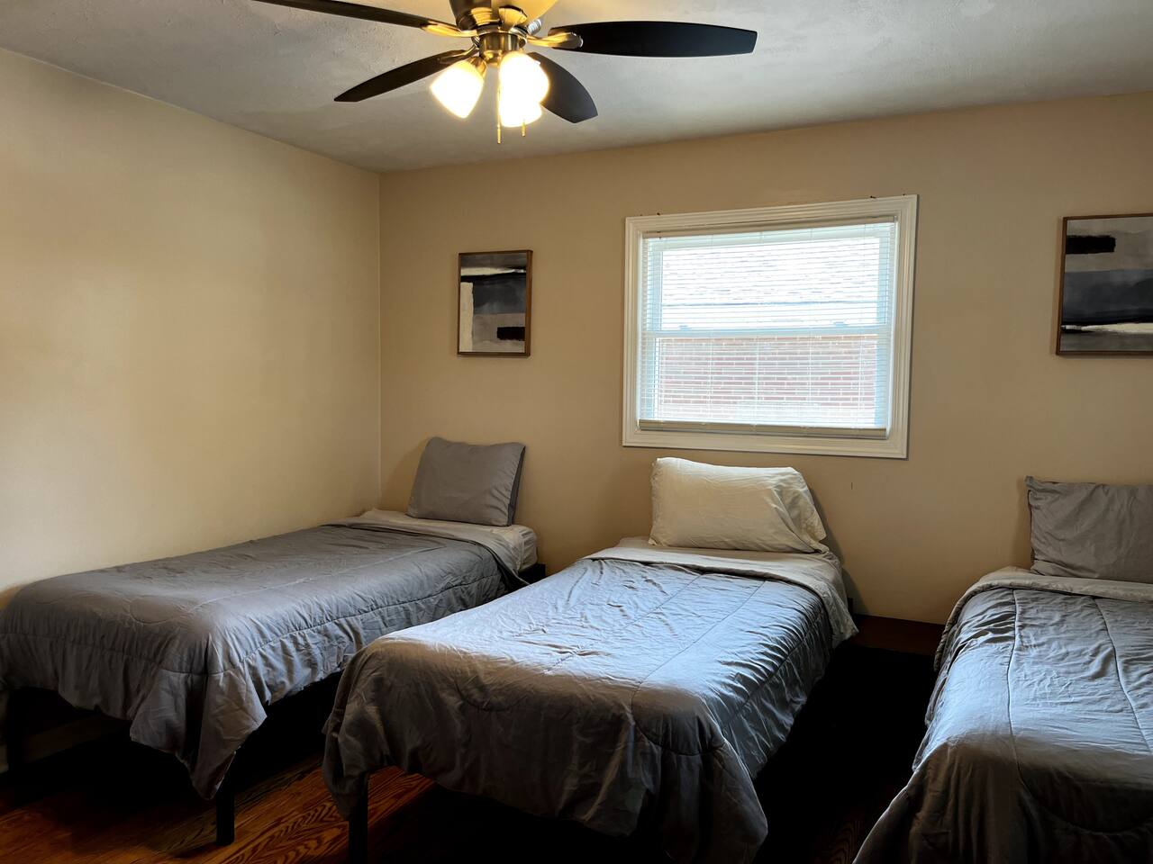 This 3-bedroom, 2-bath home is ideal for traveling work crews or groups needing a practical place to stay. Sleeping Setup: 5 single beds (2 shared rooms) 1 queen bed (private room) Amenities: 2 Roku TVs, free Wi-Fi, Full kitchen with essentials, 2 full bathrooms, Washer/dryer, Towels, soap, shampoo, and toilet paper included Extras: Fenced backyard, covered patio, Driveway parking for 3 vehicles Convenient Location: 8–30 mins to major hospitals, <15 mins to Kroger, Walmart & Aldi