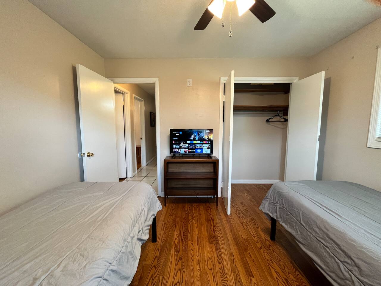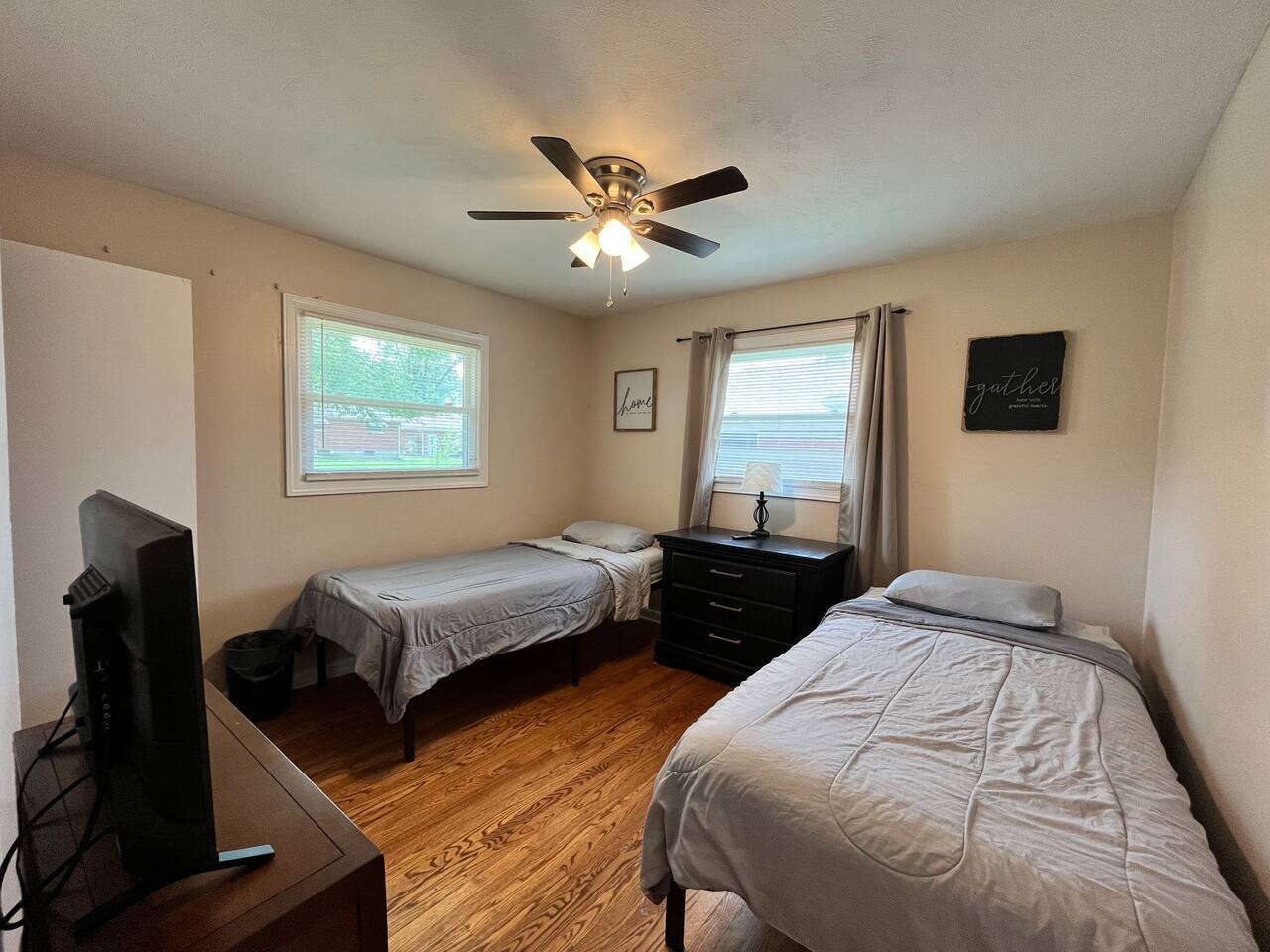 This 3-bedroom, 2-bathroom home is designed for traveling work crews who need a reliable place to rest, clean up, and recharge after a long day. The house includes a full kitchen, washer and dryer, and smart TVs for downtime. Driveway parking is available, with no need to worry about street parking. Simple, quiet, and practical — everything your crew needs for a comfortable stay without distractions.
